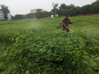 因近期天氣陰雨連綿,七街地下水勘測場地內的草勢隨之越來越旺盛,為保障勘測現場工作的順利進行,從7月19日開始,現場工作人員展開了為期五天的除草工作。