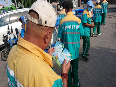 培訓過程中,首先向參加培訓的一線保潔員工發放了《保潔項目口袋書》并針對保潔人員的日常行為規范及作業質量標準、如何應對極端天氣下的工作應急預案進行了充分的學習。